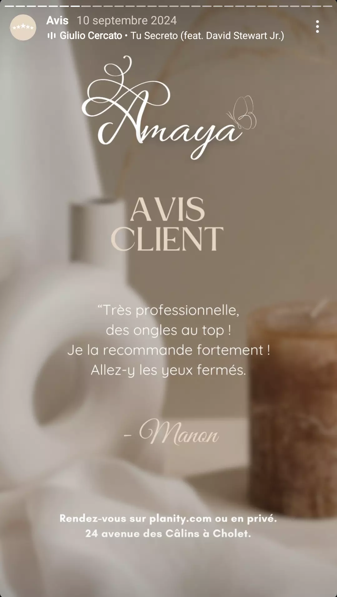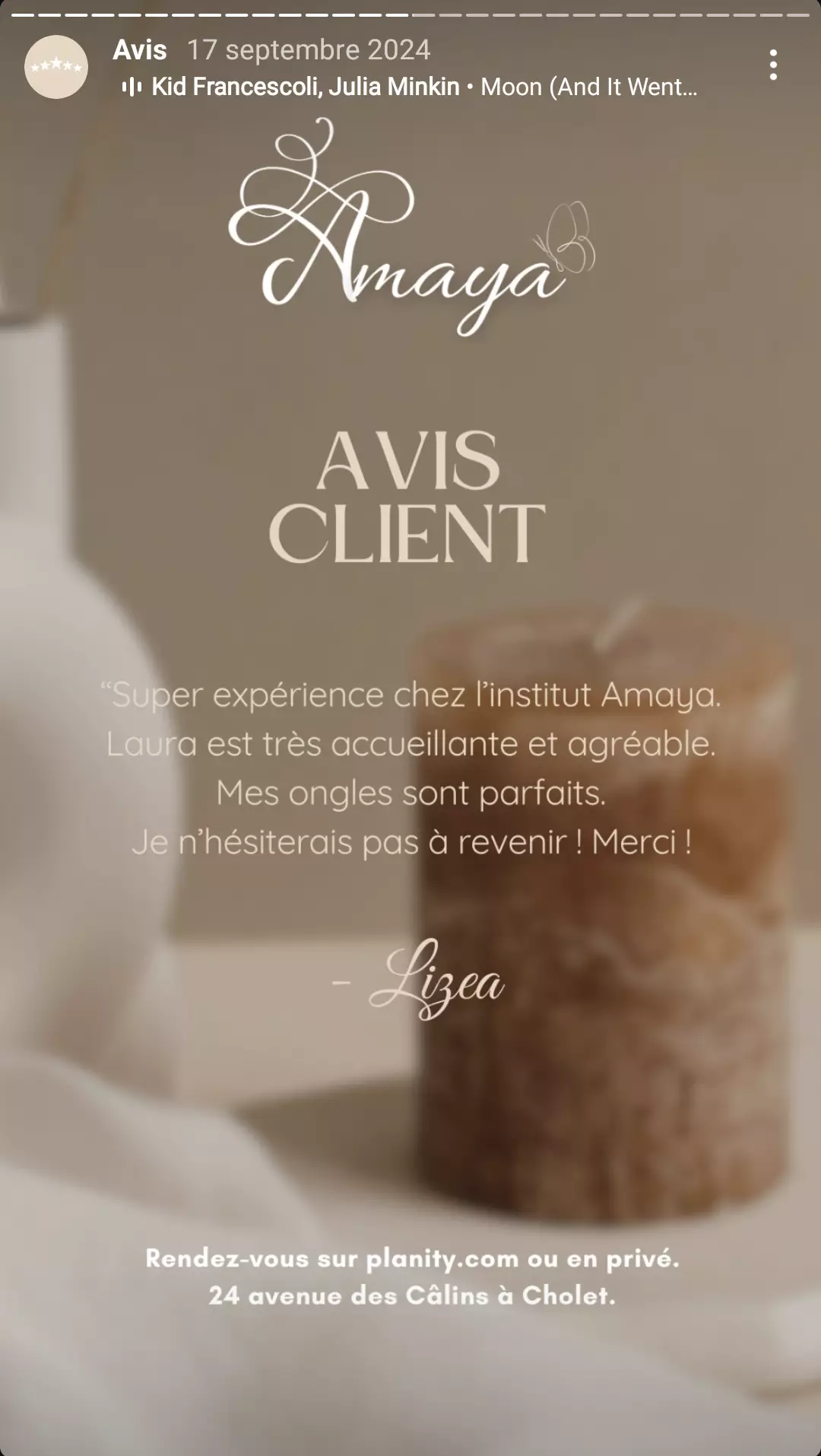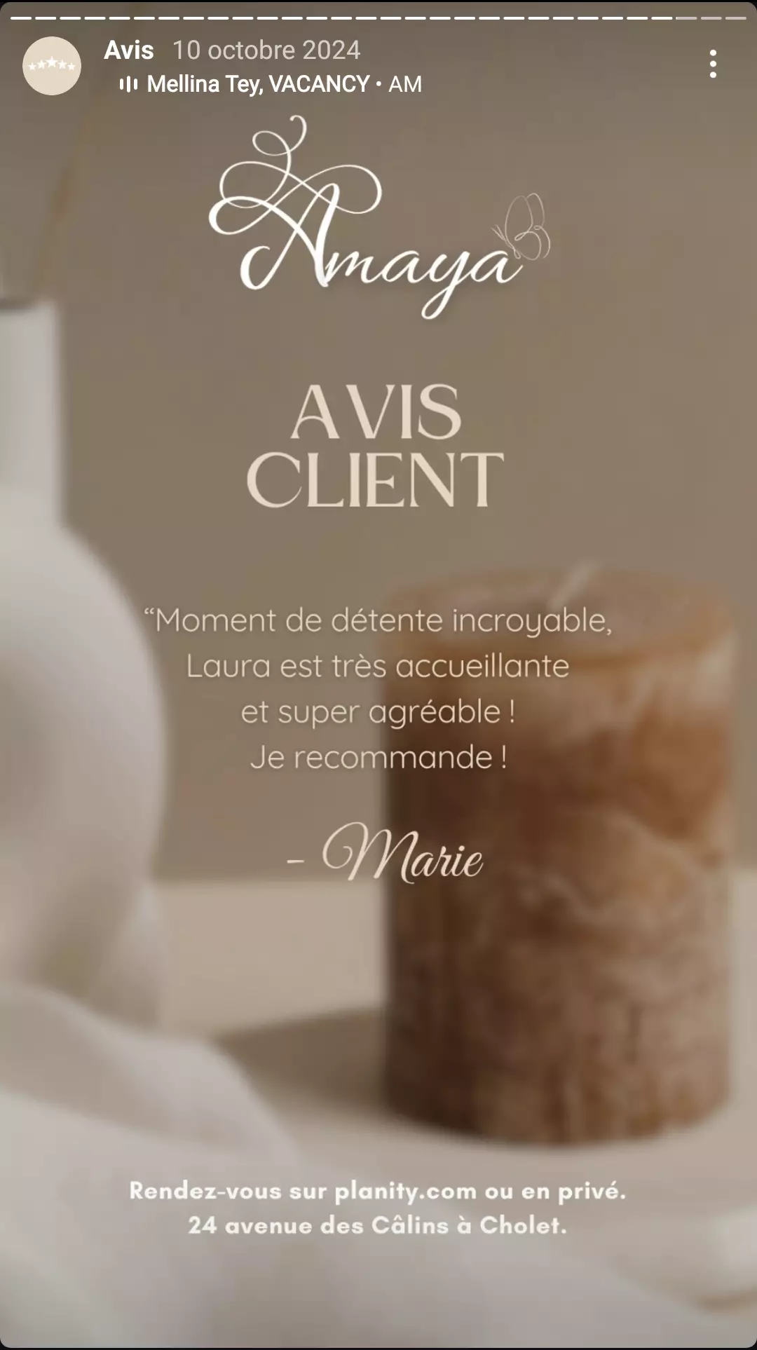 Nous tenons également à remercier celles et ceux qui prennent le temps de partager leur expérience. Votre satisfaction est notre priorité, et savoir que vous quittez Amaya Head Spa et Prothésie Ongulaire avec le sourire et un sentiment de bien-être est notre plus belle réussite.